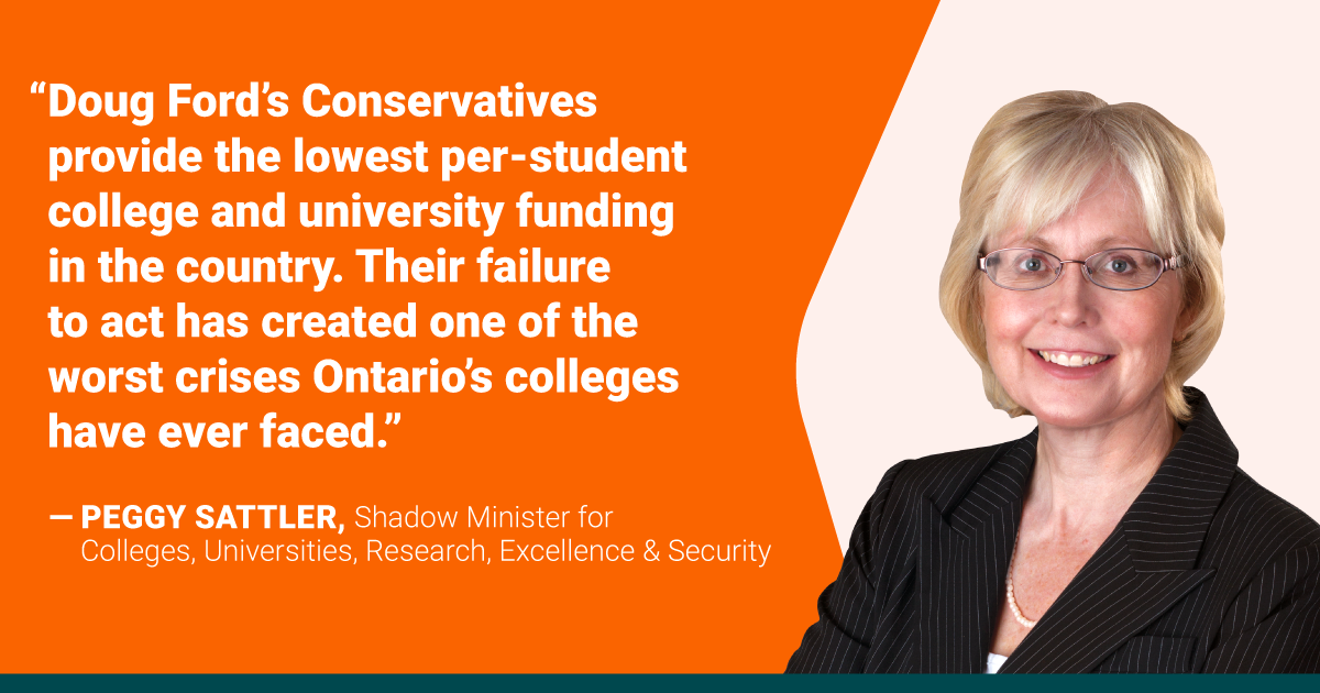 “This didn’t happen by accident. Our government provides the lowest per-student college and university funding in the country. Their failure to act has created one of the worst crises Ontario’s colleges have ever faced. We need to stand up for students and stop the cuts.”